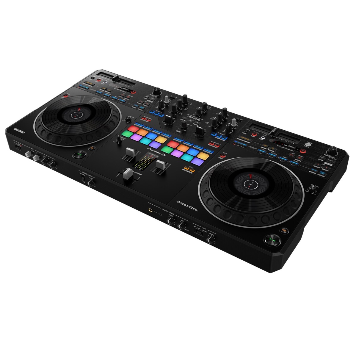 Los controles deslizantes de tempo largo en el REV5 se ejecutan horizontalmente sobre las secciones del deck, mientras que los Performance Pads y Lever FX se colocan en la sección del mezclador para actuaciones dinámicas, emulando las configuraciones del deck de la serie PLX + mesa de mezclas de la serie DJM-S, tan apreciadas por los DJs de formato abierto de todo el mundo. Gracias a la proximidad de los pads, palancas y faders, puedes fusionar scratching con pads play y efectos.