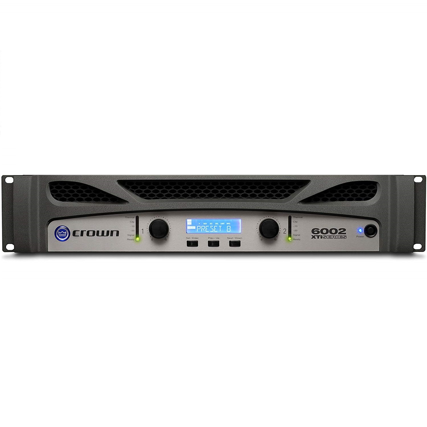 Etapa de potencia Crown XTI6002 con DSP de 2x1200W a 8Ohm, 2x2100W a 4Ohm, 2x3000W a 2Ohm y 4200W Bridge a 8Ohm, 6000W Bridge a 4Ohm.